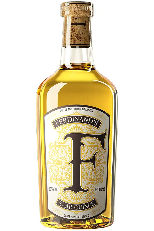 Ferdinand’s Saar Quince Gin è un omaggio allo sloe gin inglese, fatto però non con il prugnolo ma con un prodotto locale che cresce vicino alla distilleria: le mele cotogne fresche. Le botaniche principali di questo gin sono: angelica, bacche di rosa, coriandolo, ginepro, guscio di mandorla, lavanda, luppolo, mela cotogna, prugnolo selvatico, rosa, tagliato con rausch kabinett del 2011, timo, zenzero e vetiveria. Ferdinand's Saar Quince Gin è ottimo anche bevuto da solo, in accompagnamento a dolci e formaggi.