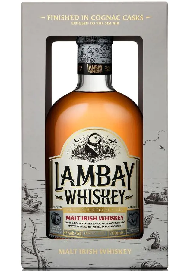 Considerato l’apice dell’esperienza di miscelazione della rinomata Casa Camus, il Lambay Malt Irish Whiskey è un innovativo blend di tre single malt provenienti da tre distillerie irlandesi diverse che sono sia doppiamente che triplamente distillati, maturati in botti di bourbon, e magistralmente miscelati prima di essere rifiniti nello stile tipico delle botti di cognac di Lambay. L’acqua del Pozzo della Trinità dell’Isola di Lambay viene aggiunta al momento dell’imbottigliamento.