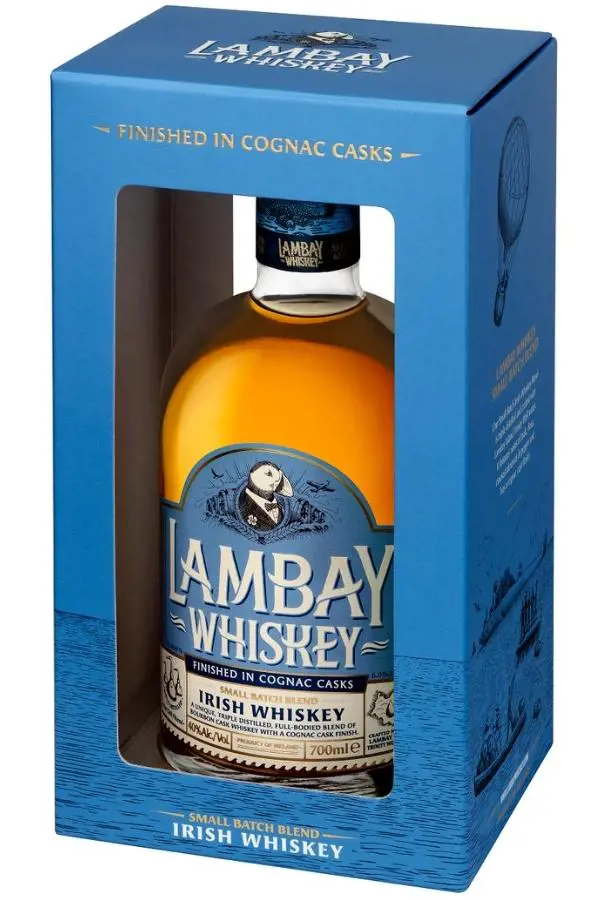 Solo i migliori distillati di whiskey triplamente distillati sono stati selezionati a mano per perfezionare il Lambay Whiskey Small Batch Blend. Questo whiskey è un blend di orzo maltato e whiskey di grano, è triplamente distillato e matura in botti di bourbon prima di essere rifinito in botti di Cognac provenienti dalla Maison Camus in Francia. Questo stile caratteristico di finitura con cognac garantisce che ogni bottiglia sia elegante, floreale e dolce. L’acqua del Pozzo della Trinità dell’Isola di Lambay viene aggiunta nella fase di imbottigliamento, rendendo questo Lambay Small Batch Blend unico.