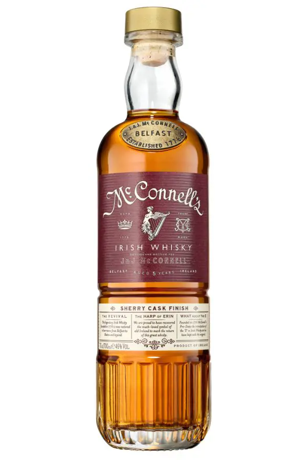 Tradizione irlandese dal 1776. McConnell’s è uno dei marchi di whisky irlandese più antichi, nato a Belfast nel 1776 e oggi rilanciato dalla Belfast Distillery Company con l’obiettivo di riportare in auge una leggenda. La gamma McConnell’s si distingue per uno stile elegante e accessibile, frutto di una produzione artigianale e di un’attenta selezione di botti. I whisky sono caratterizzati da un profilo morbido e armonico, con note di vaniglia, miele, spezie dolci e leggeri sentori legnosi, ideali sia per gli appassionati che per i neofiti. Distribuito in oltre 30 Paesi, McConnell’s ha ottenuto oltre 40 premi internazionali, confermandosi come punto di riferimento nella rinascita del whisky irlandese.