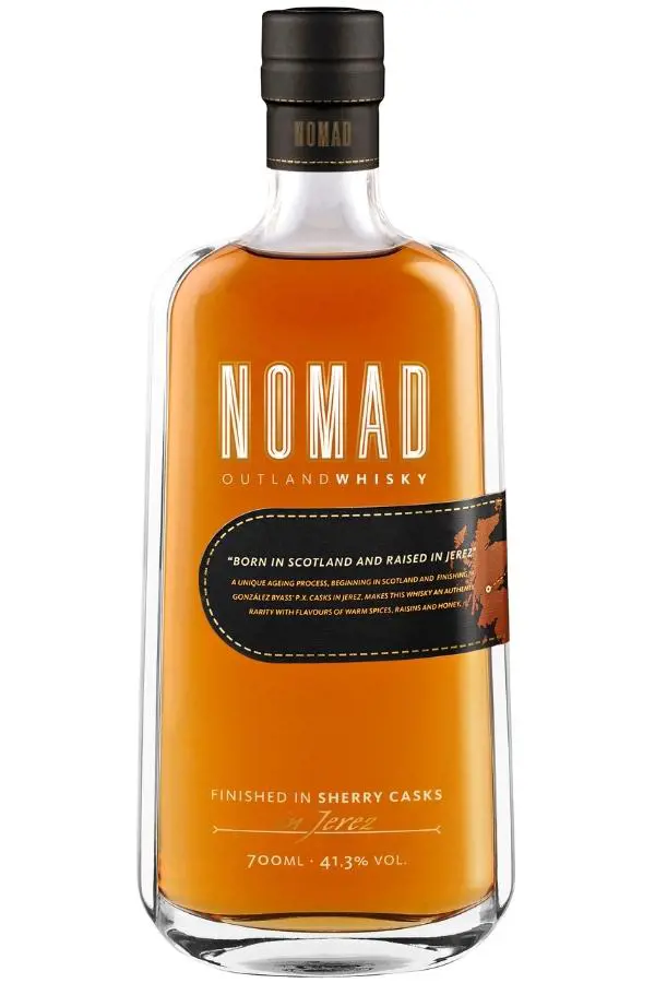 Nomad Outland Whisky è un blended whisky del rinomato mastro distillatore Richard Paterson e degli esperti produttori di Sherry Gonzalez Byass. È fatto con una selezione di oltre 30 whisky di malto e grano invecchiati tra i 5 e gli 8 anni, che vengono miscelati insieme e maturati in botti di Sherry in Scozia per tre anni. Successivamente, il whisky viene spedito a Jerez, dove conclude l'invecchiamento in botti di Pedro Ximénez per almeno un anno prima di essere imbottigliato. Richard Paterson e il mastro distillatore di Gonzalez Byass, Antonio Flores, hanno sperimentato diverse botti di Sherry, tra cui Oloroso e Fino, ma alla fine hanno optato per le botti di Pedro Ximénez per questa espressione allettante. Dal colore ambrato, Nomad Outland Whisky sprigiona al palato un gusto sapido con note di uvetta, miele, vaniglia e frutta secca.
