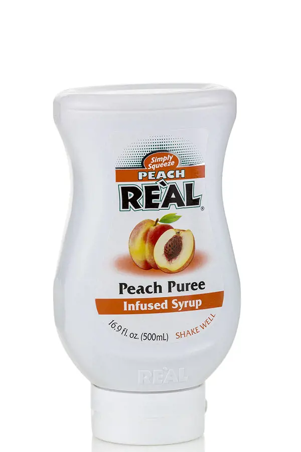 Reàl Peach è un ricco blend di pesche Californiane Elegant, Rich e Summer Lady mescolate e infuse con sciroppo di zucchero di canna per creare un ingrediente per cocktail ineguagliabile e delizioso, progettato da e per baristi e mixologists di livello mondiale.