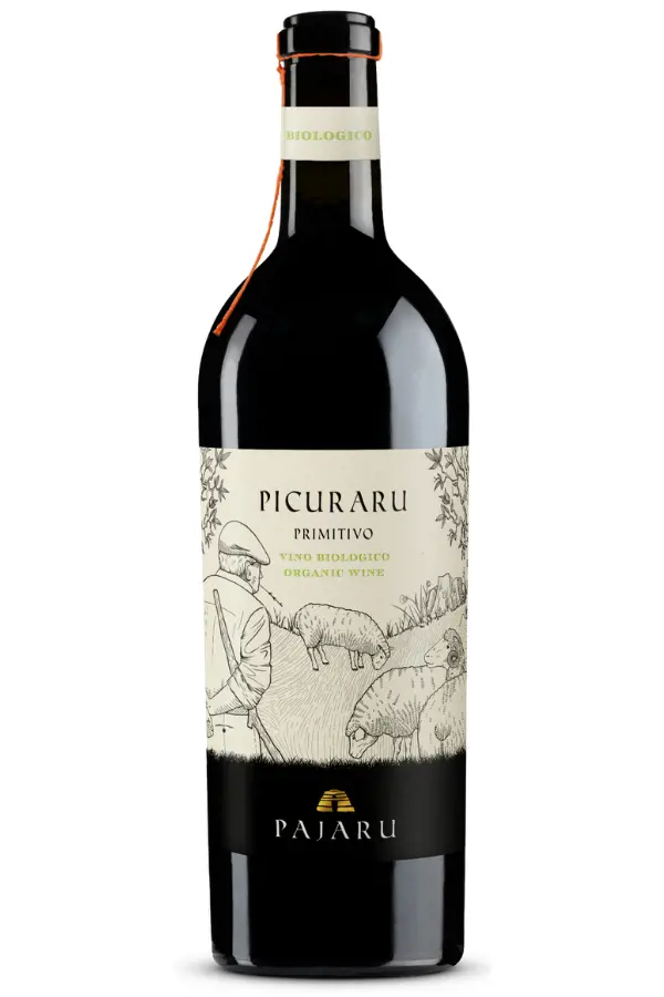 Il Picuraru, della tenuta Pajaru, è un Primitivo la cui vendemmia avviene dalla prima decade di settembre. La vinificazione prevede una lunga macerazione delle bucce per 35 giorni e una fermentazione in acciaio. L’affinamento prevede una sosta per 6 mesi in tonneau di rovere Francese e Slavonia (20% legni di primo passaggio e 80% di secondo) e per ulteriori 4 mesi in bottiglia. Un maestoso vino rosso rubino profondo carico di intensità, al naso i profumi ammalianti di frutta rossa matura si trasformano in bocca in note di prugna, cacao, cuoio e pepe nero. Il PICURARU è un vino caldo, persistente e abbastanza tannico che regala maggiore espressione se lasciato maturare un paio di anni. Il PICURARU si abbina a zuppe di legumi con pancetta, pasta con il ragù e formaggi stagionati.