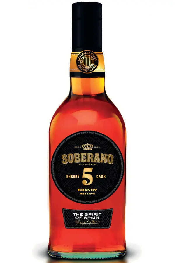Arricchire i Brandy Soberano con Oloroso è un fattore determinante nella creazione dello speciale carattere di Soberano 5. Tonalità profonde di oro antico con sfumature rossastre che denotano una certa complessità. Al naso presenta note dolci di caramello tostato e legno duro. Al palato è rotondo e morbido con netti ed equilibrati sentori di dolcezza, finale lungo che rivela un chiaro carattere di sherry.